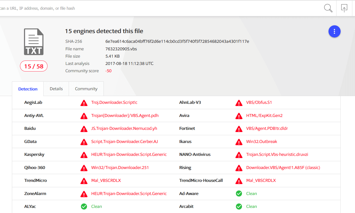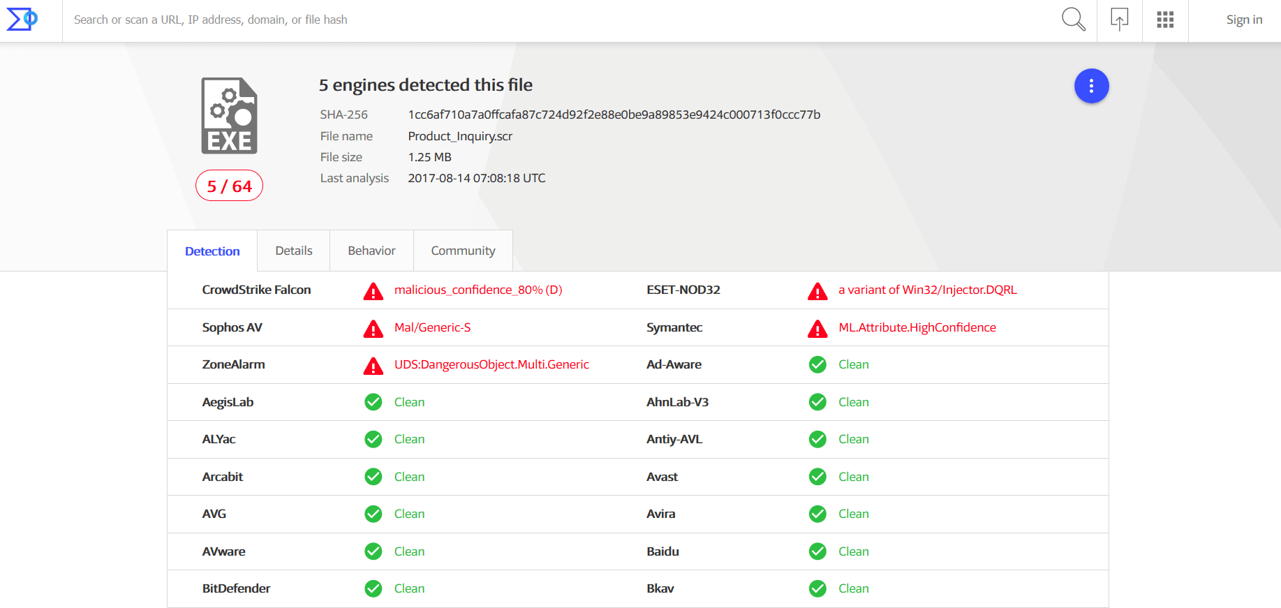 See more details from Virus Total below: