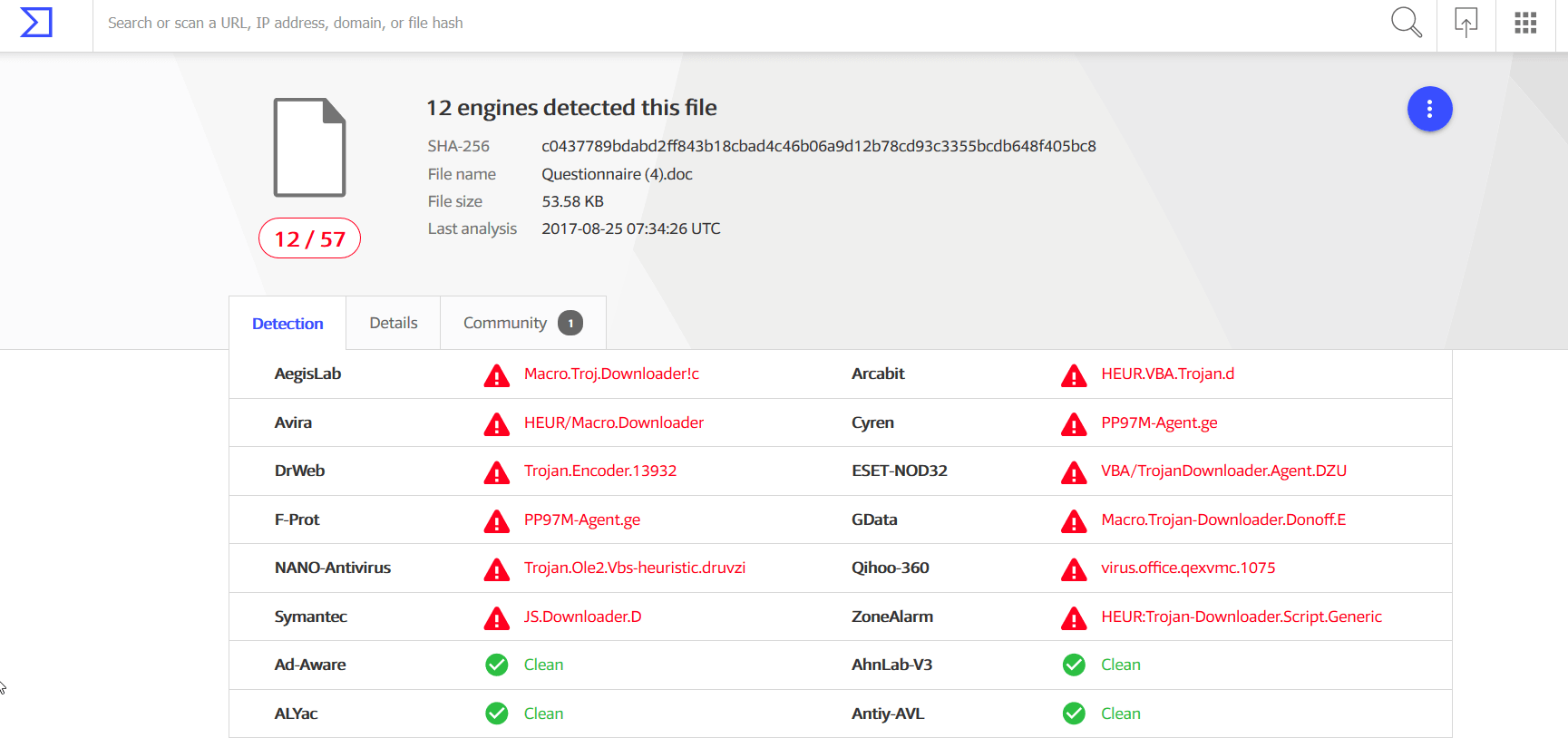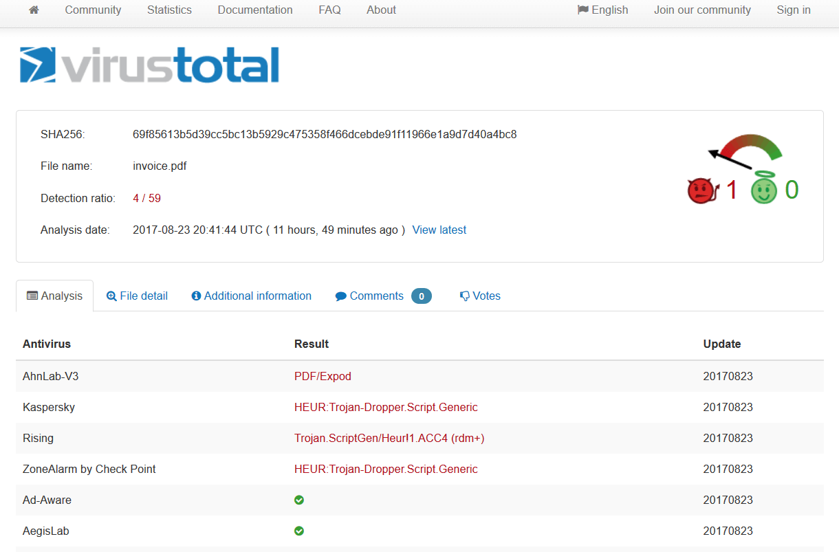 Virus Total gave us the following data: