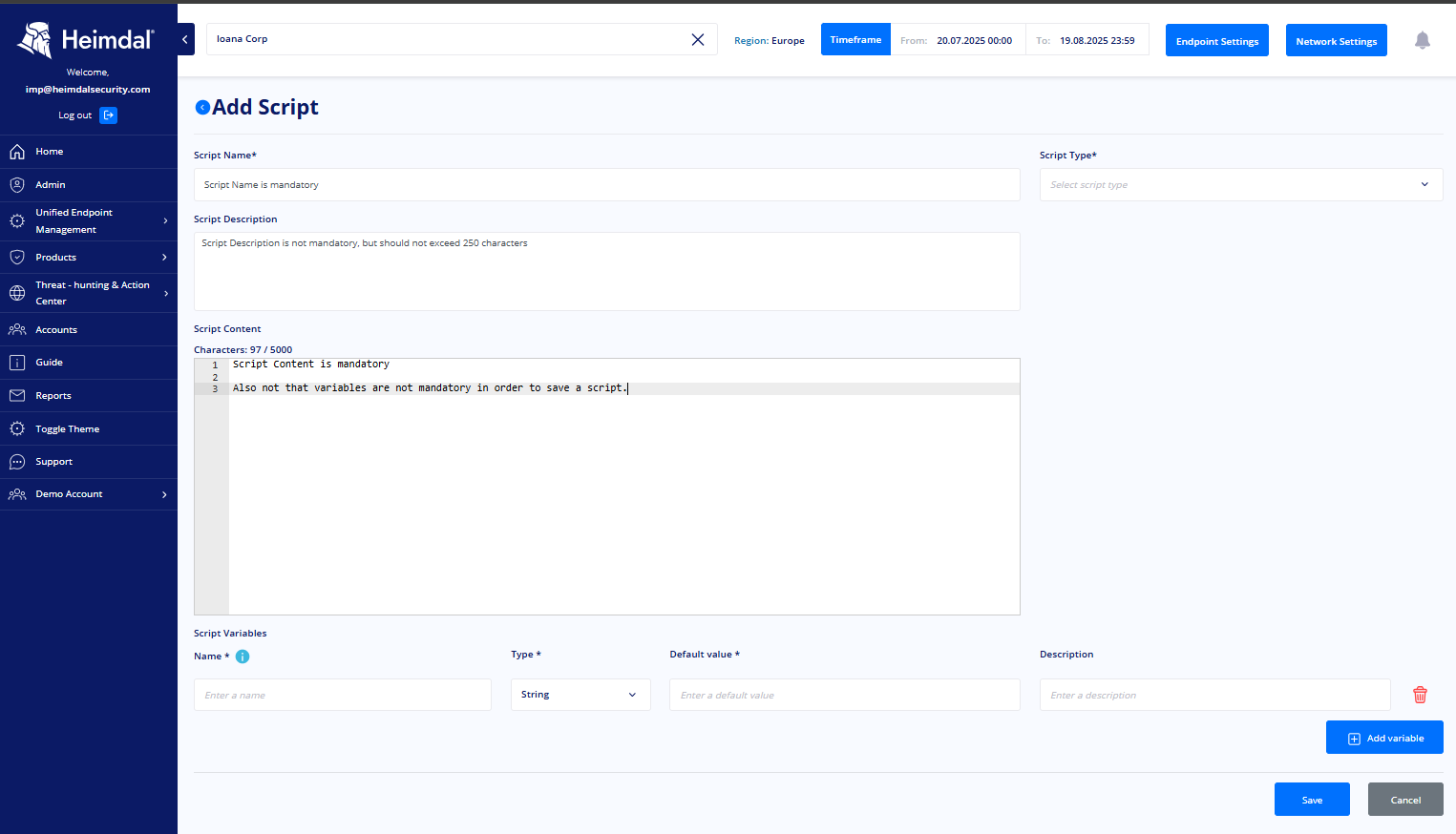 Admins can browse and import scripts into their Personal Repository, where they’re automatically tagged with a “Heimdal-” prefix for traceability.