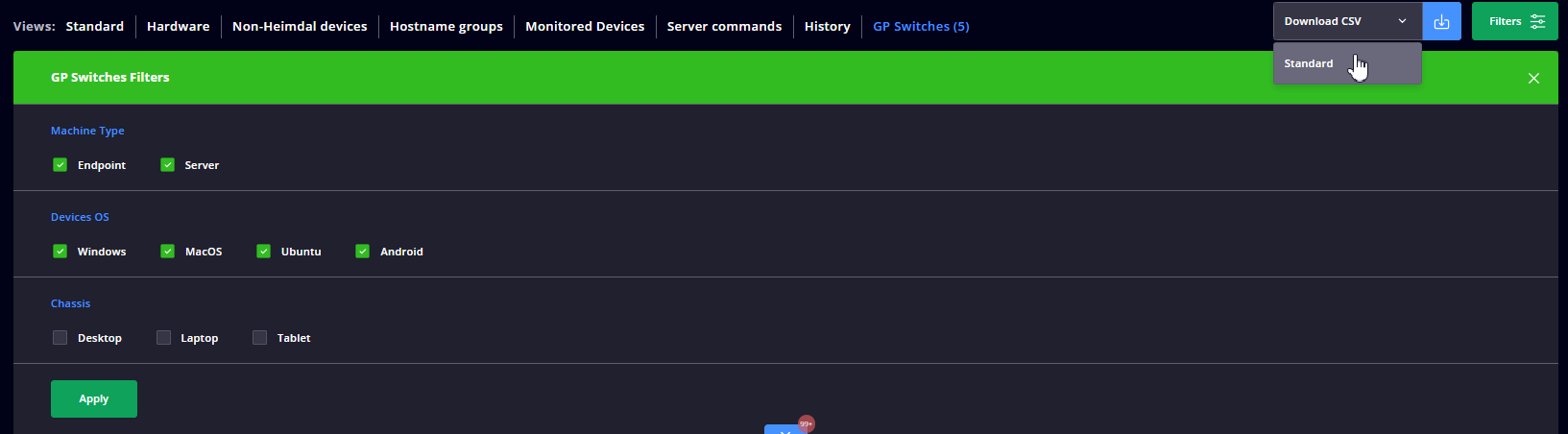 - GP Switches view: Displays all Group Policy changes, including who made them, when, and what the previous configuration was.