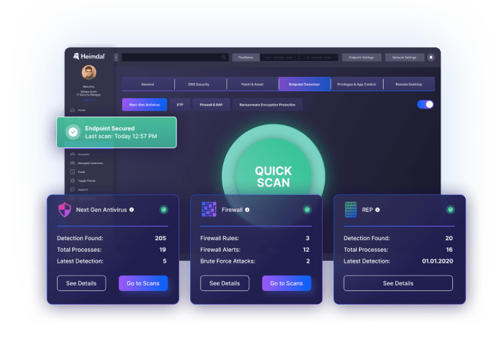 Leverage the power of Heimdal’s advanced endpoint protection to secure your systems against today’s most dangerous threats. Our unified solution combines multi-layer antivirus, exploit prevention, and behavioral analysis with intelligent remote access protection.