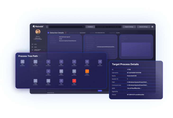 Heimdal NGAV neutralises threats automatically without needing manual input. From detecting malicious payloads to isolating infected systems and halting remote sessions, it acts instantly to stop attacks at every stage. Designed for modern security teams, it reduces response time and frees up resources by turning every endpoint into a self-defending asset.